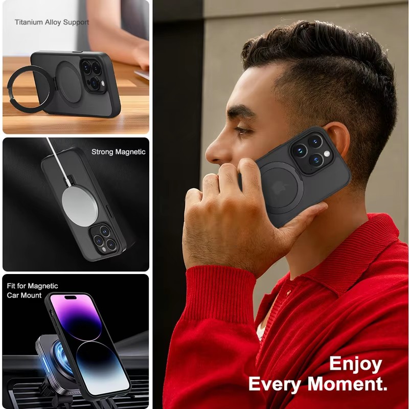 Secure Magnetic Stand:​ The integrated, ultra-strong 38-piece magnetic ring holder​ offers flawless compatibility with MagSafe accessories. It provides a stable, hands-free viewing and typing experience—perfect for video calls, streaming content, or following recipes—and folds away seamlessly when not in use.
